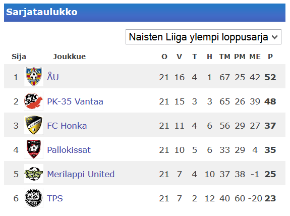 Pallokissat ehjällä esityksellä kavensi eron pronssiin kahteen pisteeseen Viikko takaperin Pallokissojen ja Merilappi Unitedin ottelussa Kemissä kuuluttaja aloitti työnsä hätkähdyttävästi kertomalla että kummallakaan joukkueella ei ole isompaa panosta enään sarjassa. Pallokissojen ero pronssiin olikin silloin kahdeksan pistettä. Pallokissat löi sitten Kemin ansaitusti ja nyt TPS kaatui vakuuttavalla esityksellä 3-0. Näin viikko myöhemmin ero on sitten enään kaksi pistettä Honkaan ja jäljellä on kaksi kierrosta josta toinen on keskinäinen ottelu Espoossa. Pallokissat oli valmistautunut huolella koko viikon TPS kohtaamiseen, olihan taustalla Tepsin ottama murskaava voitto PK-35 Vantaasta viime viikolla ja muistoissa oli myös Pallokissojen ja TPS edellinen kohtaaminen. Vastakkain oli joukkueet, joissa molemmissa oli nuorisomaajoukkuepelaajia yhteensä lähes kaksi joukkueellista. Tässäkin vertailussa kissalauma vei tämän erän selvästi yksilöinä että joukkueena. Pallokissat erittäin keskittyneellä, itseluottamusta uhkuvalla esityksellä otti kaikki aseet pois turkulaisilta ja esimerkiksi ennakkoon pelätty Ria Öling pysyi aisoissa koko ottelun ajan. Ensi minuuteista lähtien kuopiolaiset vei peliä ja ensimmäiset 25 minuuttia oli täysin Pallokissojen hallussa. Turulla oli ottelussa ensimmäisellä puoliajalla yksi erittäin hyvä tekopaikka mutta Pauliina Tähtisen hieno torjunta esti maalin syntymisen. Tuo tilanne oli oikeastaan ainoita paikkoja jossa Kissojen puolustus hiukan aukesi. Muuten koko pelin paketti pysyi kasassa ja TPS oli vastaanottaja. Puolustuksesssa varsinkin huippukuntoinen Piia Jukarainen pelaa elämänsä kautta. Pallokissat hyökkäsi monipuolisesti ja varsinkin kolmikko Tiia Savolainen, Signy Aarna ja Anni-Maija Kauppila juoksutti turkulaisten puolustusta koko ottelun ajan. Juuri 17 vuotta täyttäneen Savolaisen eteneminen laidalla oli komeaa katsottavaa ja päivän syntymäpäiväsankari Aarna taas piti turkulaiset koko ajan varpaillaan ollen mukana jokaisessa maalissa omalla panoksellaan ja Kauppilan suorituksillaan ratkaisi ottelun. Ensimmäinen maali tuli kun TPS rikkoi Aarnaa noin kahdenkymmenen metrin päästä maalista. Kauppila laukoi vapaapotkusta pallon varmasti maaliin. Puoliajalle lähdettiin 1-0 johtoasemissa. Toinen puoliaika oli tasaisempi, mutta Pallokissat silti selvästi koko ajan kuskin paikalla. Tepsin Tiina Vatanen rikkoi Aarnaa ottelun 61 minuutilla ja Kauppila laukoo rangaistuspotkusta jo 2-0. Tämän jälkeen ottelussa oli pieni asemien hakuvaihe ja myös lyhyt jakso jossa TPS oli lähellä päästä otteluun mukaan. Takaa-ajo kuitenkin katkesi kun Pallokissat riiston jälkeen lähtee nopeaan vastahyökkäykseen ja laitaan siirtynyt Kauppila keskittää läheltä kulmalippua pallon maalille, johon Aarna tulee eriomaisella ajoituksella ja ratkaisee ottelun lopullisesti. Lopputuloksena hieno voitto ja kun samaan aikaan Honka kärsi tappion, kaventui ero kolmanteen sijaan jo kahteen pisteeseen. Ollipekka Ojala oli tyytyväinen ottelun jälkeen:"Joukkue pelasi loistavasti ennakkoon laaditun pelisuunnitelman mukaan. Ensimmäisellä jaksolla pelasimme monipuolisia hyökkäyksiä ja hallitsimme peliä, ottelun loppua kohden passivoiduimme ehkä liikaa, mutta peli oli hyvin hallussamme koko 90 minuuttia. Varmasti kauden ehjin esitys". Pallokissat saa ensi lauantaina kotistadionin iltavaloissa vastaan sarjaa johtavan hallitsevan Suomen mestarin Åland Unitedin. Ottelussa Åland United voisi voitolla varmistaa Suomen mestaruuden ja Pallokissat taas haluaa voittoa siirtääkseen pronssin kohtalon viimeiselle kierrokselle. Honka taas reissaa Turkuun ja ottanee voiton jos TPS ote ei tämäniltaisesta parane. Harvinaisen mielenkiintoinen loppu siis Naisten Liigassa tiedossa. Veikkauspisteet: Tilastot tästä |