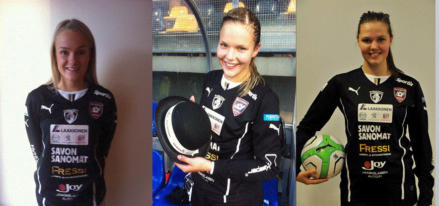 Kolme tuoretta sopimusta Pallokissat teki kolme uutta sopimusta lauantai-illan päätteeksi. Kaikilla kolmella pelaajalla on runsaasti nuorten maajoukkuekokemusta. Mira Kurtti (-92) siirtyy FC Hongasta Pallokissoihin. Tämä nuorten maajoukkueen vakiokasvo huilasi jalkaoperaation vuoksi viime kauden, mutta on nyt hyvässä kunnossa. Vantaalaisen Hakunilan Riennon kasvatti siirtyi jo nuorena Tikkurilan Palloseuran liigajoukkueeseen ja myöhemmin FC Honkaan. Mimmun pelipaikka on ollut toppari tai puolustaja. Hän oli loukkaantumiseen asti nuorten maajoukkueen vakiokasvoja. Edellinen liigaottelu on kaudelta 2012 loppusyksyltä. Mimmu kommentoi sopimusta ;"Olen innoissani ja tosissaan, olen kyllä vaikuttunut harjoitusten ja valmennuksen tasosta sekä pelaajien taidoista sekä yrityksestä. Täällä syödään nähtävästi terveellisempää aamupuuroa kuin Etelä-Suomessa." Henna Honkanen (-94) jatkaa Pallokissoissa. Junnu sai lempinimensä kun siirtyi jo viidentoista vanhana KMF liigajoukkueeseen. Junnu aloitti jalkapallon Iisalmessa ja siirtyi jo leikkikaveri-iässä Kuopioon. Polvivamma pilasi kauden 2011 ja 2012 oli vielä parhaan kunnon hakemista. Viime kesä näytti kuitenkin mihin Junnu parhaimmillaan pystyy, pelaaja syttyi samaan aikaa lentoon kuin koko muukin joukkue. Hyökkäyspään pelaaja tykitti seitsemän maalia viime kaudella liigassa ollen Pallokissojen paras maalintekijä. Toiveena olisi saada ehjä talvi ja kevät alle, joka viimeksi on ollut Junnulla 13 vuotiaana. Junnu halutessaan kamppailee Kanadan alle 20 vuotiaiden MM-kisapaikasta. Katariina Väänänen(-94) jatkaa myös Pallokissoissa. Sairastelu pilasi Daven viime kauden mutta nyt operaation jälkeen hän on päässyt aloittamaan harjoittelun. Daven pelipaikka on puolustaja tai keskikenttä. Molempijalkaisena pelaajana hän tuo selvän lisän viime kauden joukkueeseen. Periksiantamaton pelaaja halutessaan kamppailee Kanadan alle 20 vuotiaiden MM-kisojen pelipaikasta.