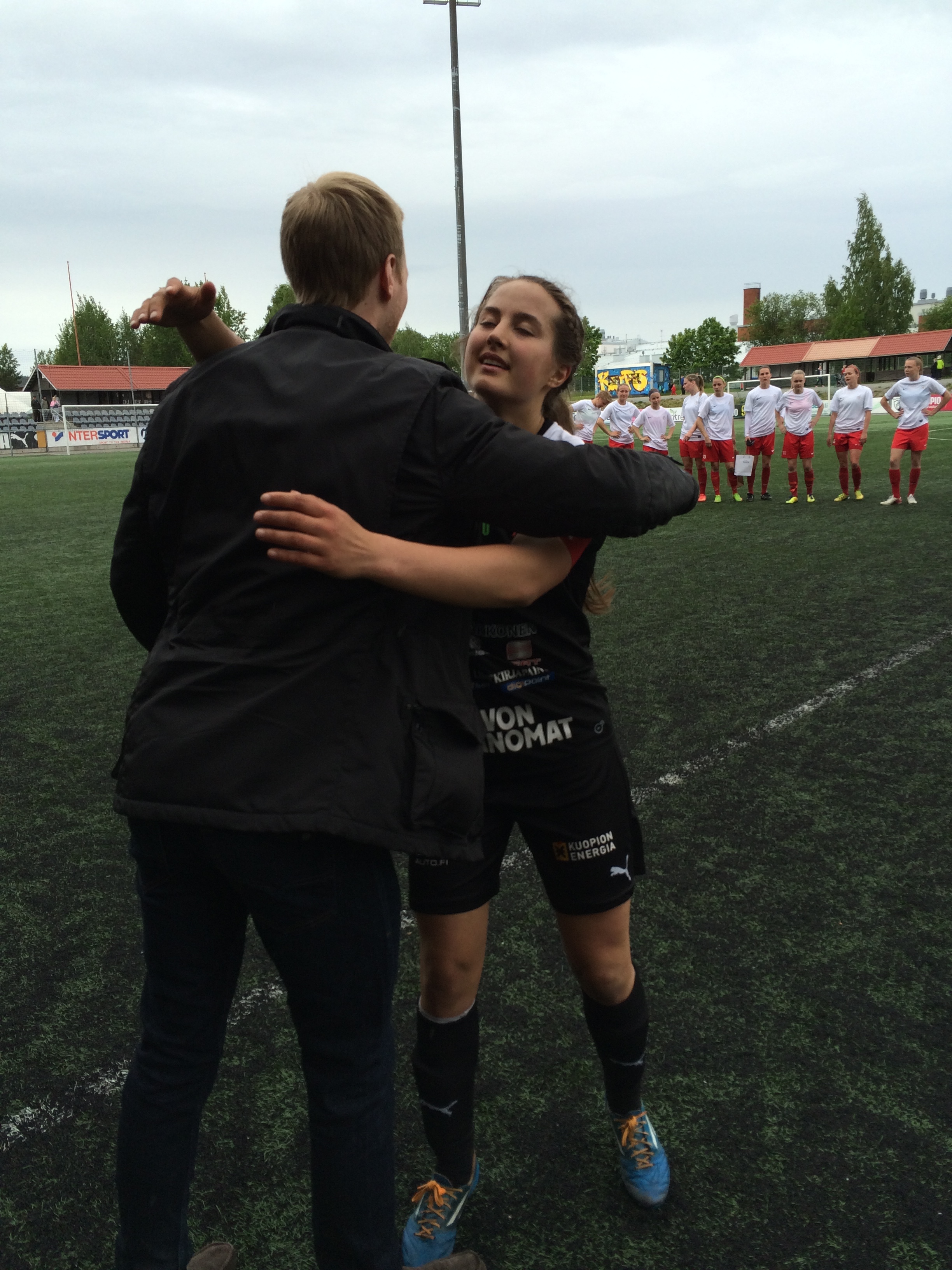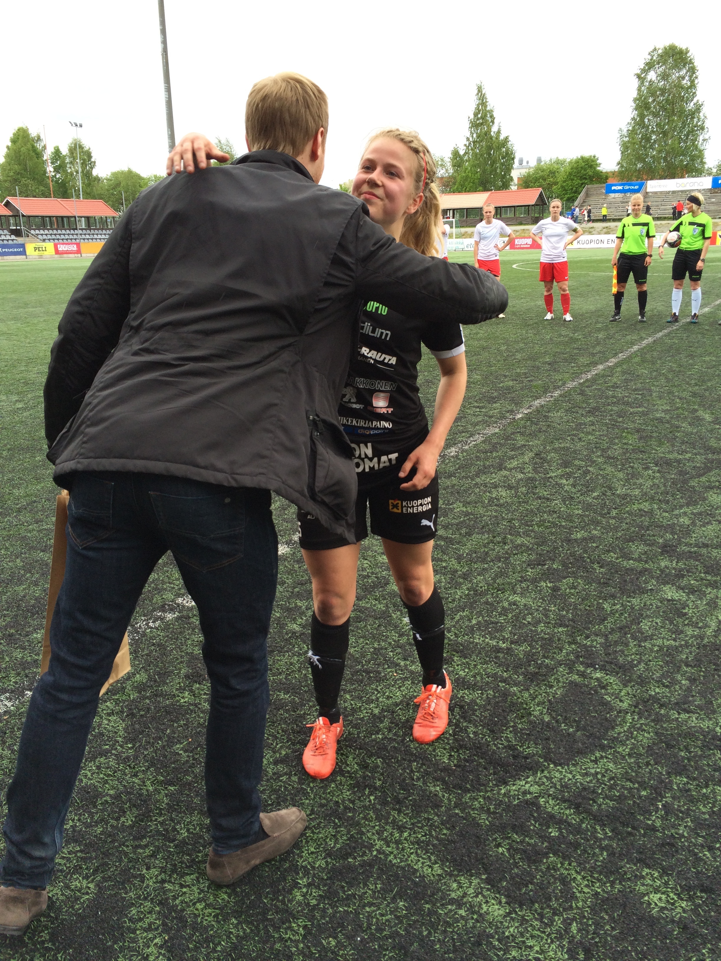 Pallokissat – PK-35 Vantaa 1-1 (0-1) Naisten Liigan kärkikamppailu päättyi samaan 1-1 tulokseen kuin keväällä pelattu Suomen Cupin puolivälierä. Ottelu olikin aika samanlainen kuin kevään kohtaaminen ja pistejakoa voidaan pitää oikeutettuna lopputuloksena. Molemmista joukkueista näki, että vastustajan vahvuudet tiedettiin, se näkyikin vähäisinä maalipaikkoina. Pelaaminen oli molemmin puolin aika tarkkaa ja kärkiottelulle tyypillisesti virheitä vältettiin. Ottelun ensimmäinen jakso oli lievästi vieraitten. Se piti palloa varmasti omalla puoliskollaan, mutta pystyi kuitenkin harvoin rikkomaan Pallokissojen puolustusmuotoa. Parhaat paikat syntyivät Pallokissoille ja niistä paras oli Anttu Kauppilan vapaapotku, joka kuitenkin painui yläriman kautta yli. Vierasjoukkue siirtyi kuitenkin johtoon, kun Heidi Kivelä toimitti rangaistuspotkun kotijoukkueen maaliin. Toisella jaksolla pallollinen pelaaminen tasottui ja kotijoukkue paransi omaa hyökkäyspelaamistaan. Täysin ansaittu tasoitusmaali syntyi ottelun 73. minuutilla. Riiston jälkeen Kauppila nousi vasemmalta laidalta nopeaan vastahyökkäykseen, harhautti PK pelaajan ja keskitti vasemmalla jalallaan. Keskitys osui ylärimaan ja paluupallossa oli ensimmäisenä Tiia Savolainen, joka iski tasoituksen tyhjään maaliin. Kaiken kaikkiaan ottelu oli hyvä tasoinen, vaikka maalipaikoilla ei tänään herkuteltu. Lopputulokseksi kirjattiin siis 1-1. Päävalmentaja Ollipekka Ojala kommentoi ottelua:”Näkihän siinä, että molemmat tiesivät toisen vahvuudet. Silti kärkiottelun arvoinen 90-minuuttinen. Me ei päästetty vierasjoukkuetta pelaamaan meidän muodon sisään ja pidettiin ne hyvin pois maalipaikoilta. Toisaalta me ei tänään päästy kontrolloidusti linjan taakse ja liian monesti riiston jälkeen hätäiltiin ja menetettiin pallo. Emme pystyneet tarpeeksi rytmittämään omaa pallollista peliämme . Joukkue on kuitenkin kasvanut huimasti viime kauden vastaavista otteluista ja seuraavaksi on otettava se seuraava askel ja voitettava nämä ottelut.” Taas järkyttävän työmäärän keskikentällä uurastanut Neea Berg ” Heti pelin jälkeen oli pettynyt olo, mikä kertoo siitä että uskotaan omaan peliin ja pelitapaan. On kuitenkin muistettava, että kärkikamppailusta piste on hyvä saavutus ja erityisen ylpeä olen siitä, että pystyttiin nousemaan siihen 0-1 tappioasemasta” Pallokissat jää keskiviikkona ansaitulle Juhannus-tauolle ja jatkaa pelejään lauantaina 27.6 Turussa, kun vastaan asettuu alakanttiin kautensa aloittanut TPS. Seuraava kotiottelu on vasta 11.7 Ilvestä vastaan. ----------- Seuraa Pallokissoja myös Facebookissa ja Twitterissä.