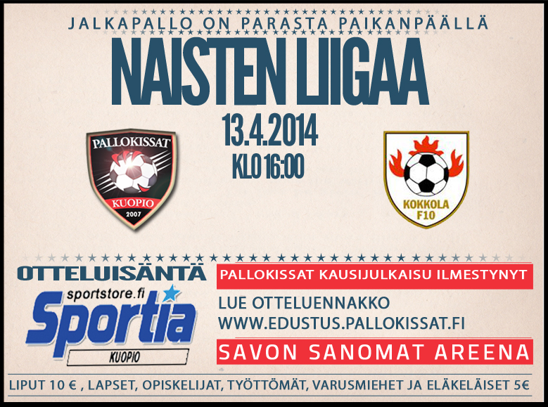 Pallokissat kurkottaa sarjakärkeä kohti sunnuntain ottelussa Pallokissat lähtee sunnuntain otteluun kerrassaan loistavista asetelmista. Kahden kierroksen jälkeen nuori kissalauma on sarjassa kolmantena ja viikonloppuna kun Naisten liigan ykkönen ja kakkonen kohtaavat toisensa, on kuopiolaisilla hyvät mahdollisuudet voitolla nousta kakkostilalle ja jopa sarjan kärkeen. Tässä tarinassa on vain on pieni muuttuja ja se pieni asia on ,että myös Pallokissojen pitää kotonaan hoitaa ensin voitokkaasti kauden yllättävän heikosti aloittanut Kokkola F10. Kolme viikkoa sitten juuri kokkolalaiset tiputti Pallokissat Suomen cupista. Kokkolalla on voittoisan Suomen cupin ottelun jälkeen ollut varsin mollivoittoista kulkua. Ensin vieraissa oululaiset oli kotihallissaan vahvempia 5-3 ja sitten sarjakärki Merilappi United niputti toisen jakson maaleilla Kokkolan selvästi. Tuossa pelissä Kokkolalla oli mukana Ruotsin ja Saksan pääsarjoista kokemusta kerännyt toppari Katie Kelly, joka yllättäen hyväksyi Kokkolan sopimuksen. Pallokissoja vastaan hyvin onnistunut toinen amerikanapu Megan Lindsay on hyökkäyspäässä paha pideltävä. Keskikentän rulettia pyörittää taitava Riikka Ketoaja. Maalilla on TU19 maajoukkueen Linda Säätelä, joka oli ohittammaton lukko cupin ottelussa. Kokkola tulee varmasti Kuopioon huonosta alkukaudesta sisuuntuneena ja tämä voi tietää vaikeaa sunnuntai-iltapäivää Pallokissoille. Pallokissat pääsee liigan kolmannelle kierrokselle hiukan kaksijakoisista tunnelmista. Sarja on alkanut todella mainiosti, mutta loukkaantuneiden lista on pitkä ja torstai-yönä palaa viisi Pallokissaa Kuopioon raskaalta reilun viikon maajoukkueturneelta. Myös iloisia uutisia on Kokkolassa saadun kahden ottelun pelikiellon päättyminen maalivahti Marjukka Mikkosella ja talven sairastellut puolustajalupaus Jasmin Miettinen on päässyt treenaamaan vihdoin täysipainoisesti. Osalle majoukkuepelaajista tämä Kokkolan peli on jopa neljäs ottelu kahdeksan päivän sisällä ja aiheuttaa varmasti myös valmennukselle mietittävää. Edellisessä cupin ottelussa näkyi selvästi silloin olleen Islanti kaksoismaaottelun vaikutus normaalia alhaisempana vireytenä. Kyseessä on kuitenkin nyt kotiottelu ja panoksena sarjasijoituksen pitäminen kolmen joukossa ja mahdollisuus jopa historiallisesti sarjakärkeen. Tässä on riittävästi motivaatiota jokaiselle pelaajalle unohtaa väsymys ja lähteä raatelemaan Kokkola entistä alemmaksi sarjassa. Pallokissojen ja Kokkola F10 ottelu alkaa Savon Sanomat stadionilla sunnuntaina klo 16.00. Pallokissat tarvitsee vahvan kotijoukkojen kannustuksen. Pallotyttöinä toimii ottelussa Pallokissojen 02-ikäluokka, kannustusta antaa 03-ikäluokka ja saattajina on 05-ikäluokasta Lilli Kokkonen ja Oona Konttinen. Tarjolla runsaasti parkkitilaan, maukasta syötävää kioskista, uusi kausijulkaisu ja erittäin jännittävä ottelu. Tervetuloa! |