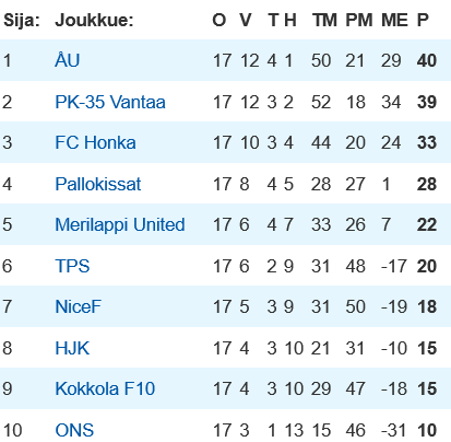 Pallokissat taistelee lauantaina kotistadionilla jopa mitallista Naisten liigaa on jo vuosia hallinneet neljä suurta seuraa eli PK-35 Vantaa, HJK, Åland United ja FC Honka. Nämä joukkueet ovat pääosin jakaneet mitallit ja mestaruuden yhdeksän viimeistä vuotta. Kuopiolainen Pallokissat on nyt noussut kaikessa hiljaisuudessa haastamaan nämä joukkueet ja taistelee tällä hetkellä yllättäen jopa liigan kolmannesta sijasta. Kissat on joka vuosi parantanut sijoitusta pitkäjänteisesti ja nyt lähestytään valtakunnan kärkeä. Sijoituksen arvoa nostaa se, että uusiutuneen valmennuksen lisäksi viime kauden avauskokoonpanosta poistui puolet pelaajista, jotka paikattiin savolaisilla nuorilla kyvyillä ja virolaisella maajoukkuehyökkääjällä. Kaikki pelaajat ovat nostaneet tasoaan ja uudet pelaajat ovat pelanneet ennakkoluulottomasti. Lauantaina klo 16 Savon Sanomat Areenalla kohtaa sarjan kolmantena oleva espoolainen Honka ja neljäntenä oleva Pallokissat. Lauantain kierroksen jälkeen jatkuu Pallokissoilla yläloppusarja, jossa se kertaalleen kohtaa Hongan uudestaan, lisäksi kertaalleen kohdataan muut kärkijoukkueet (Åland Unitedin, PK-35, Merilappi Unitedin ja TPS tai NiceFutiksen). Alaloppusarjaan jää näin NiceFutis tai TPS, HJK, Kokkola F10 ja ONS. Ala- ja Yläloppusarjan pisteet jäävät voimaan, joten jokaisella ottelulla on iso merkitys. Pallokissat voitollaan Hongasta kaventaisi eron jo kahteen pisteeseen. Myös tasapelilläkin mitskutoiveet säilyisivät hyvin yllä. Pallokissojen takana taas Merilappi on kuuden pisteen päässä. Hongalla taas on onnistuessaan pienen pienet mahdollisuudet saavuttaa PK-35 tai Åland United, tosin tämä edellyttää erittäin hyvää loppukautta ja kärkiparin pientä kompurointia. Pallokissat kohtasi Hongan toukokuussa Espoossa. Peli oli hyvin erikoinen. Ensin Honka vei ensimmäistä puoliaikaa mielinmäärin muttei onnistunut maalinteossa. Toisella puoliajalla tuli taas Pallokissat ja pyöritti hetkessä 0-2 johtoon, kunnes lopussa Honka tuli tasoihin. Siitä ottelusta joukkueissa on tapahtunut jonkun verran muuutoksia. Honka menetti kolme pelaajaa opiskelemaan ja pelaamaan ulkomaille ja sai tilalle Ruotsista maalitykki Kaisa Rankin, joka lauantaina depyytissään iski Hongalle heti kaksi maalia, kun Honka murskasi maalivahtiongelmissa olevan NiceFutiksen. Pallokissoilla runko on pysynyt aika samanlaisena mutta sairastelut ja loukkaantumiset on verottaneet pelaajia. Meneillään oleva flunssa-aalto voi myös tuoda lisämurheita joukkueille. Joka tapauksessa Pallokissat lähtee jäljellä oleaan kuuteen otteluun voittamaan jokaisen ottelun. Sarjan viimeisen ottelun jälkeen sitten nähdään mihin se riittää. Joka tapauksessa Pallokissoilla on paljon pelissä ja harmi että samaan aikaan on kotimaan yksi suurimmaista tyttöturnauksista Jyväskylässä, jonne lähes kaikki Pallokissojen juniorijoukkueet ja toimihenkilöt lähtevät. Ennen Naisten liigan ottelua Pallokissojen BSM-joukkue pelaa puolivälieräottelun TPS vastaan ja Naisten Liiga-ottelun jälkeen KuFu-98 ottelee klo 19 miesten kakkosen ottelunsa.