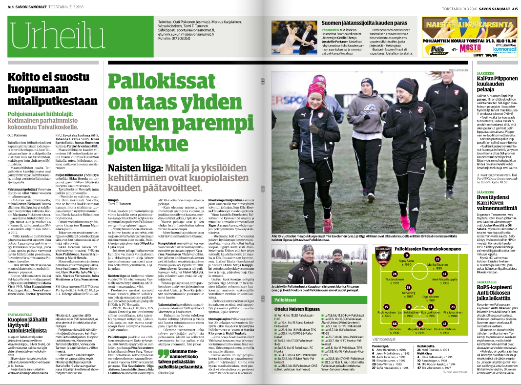 SS lehtijuttu Pallokissojen kauden avauksesta