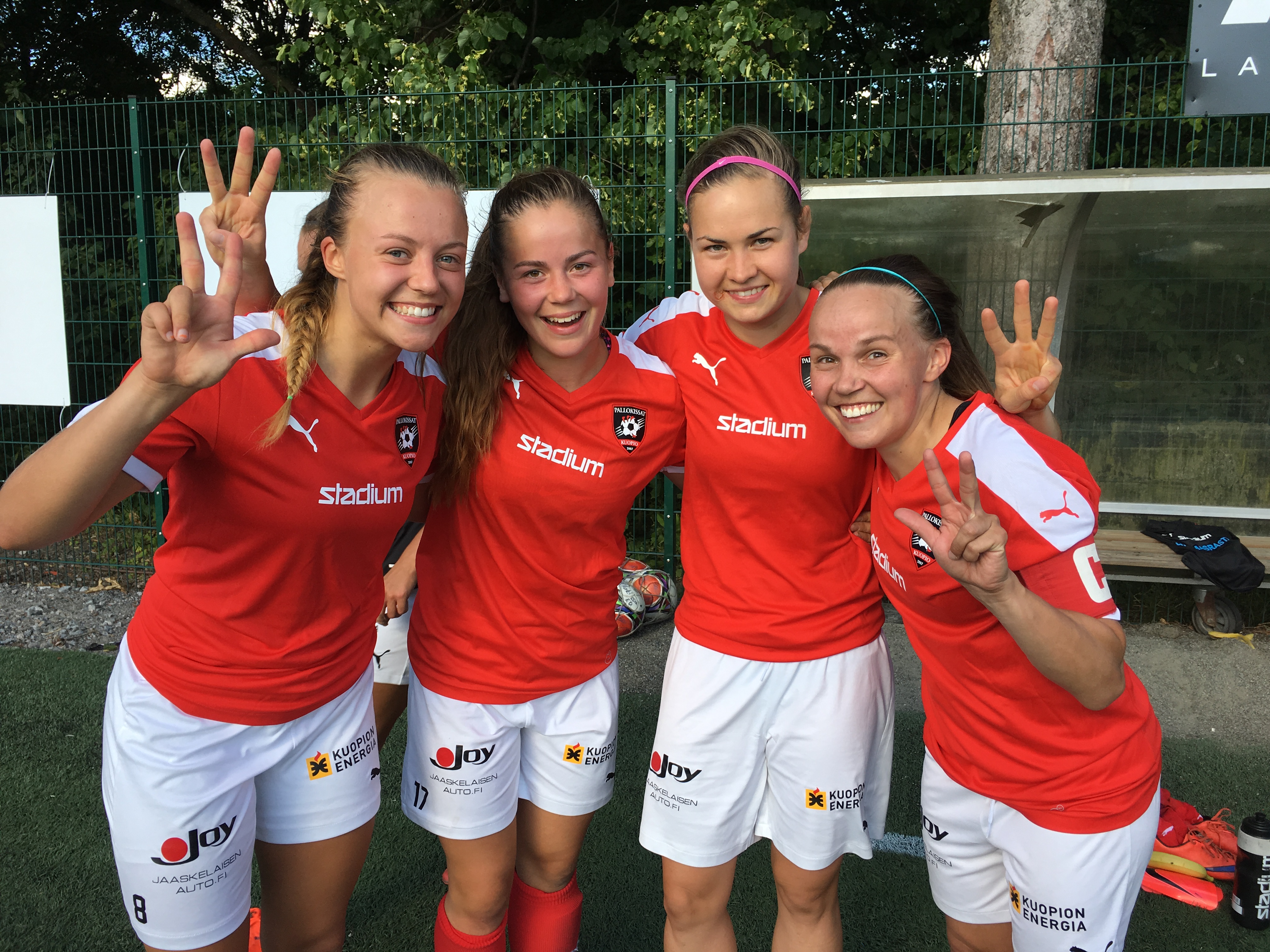 Pallokissat voittivat TPS:n Turussa 1-2. Pallokissat johtivat ottelua 0-1 noin 85 minuuttia Signy Aarnan kolmannen minuutin maalilla. TPS tasoitti 89 minuutilla rangaistuspotkusta ja Pallokissat korjasi 1-2 voiton lisäajalla syntyneellä Olga Ahtisen vapaapotkumaalilla. Sarjakakkonen TPS oli voittanut edellisellä kierroksella sarjajohtaja PK-35:n, joten Pallokissoille oli hyvä päänahka tarjolla. TPS rokotti PK-35 heti ottelun alussa kahteen kertaan, joten Pallokissat painotti nimenomaan hyvän otteluun lähdön merkitystä. Ottelu saikin kissojen kannalta loistavan alun, kun jo ensimmäisellä minuutilla Ella-Rosa Huusko laukoo TPS puolustuksen haparoinnin jälkeen 18 metristä ylärimaan. Vain kaksi minuuttia myöhemmin, kolmannella peliminuutilla pitkän maalipotkun jälkeen Ella-Rosa jatkaa Signy Aarnan läpiajoon, jonka päätteeksi Sigy viimeistelee hallitusti Pallokissojen 0-1 johdon. Tämän jälkeen pallonhallinta oli pitkälti kotijoukkueella, mutta Pallokissojen puolustusmuodon ulkopuolella. TPS oli vaarallinen saadessaan pallon ns. kymppialueelle. Pallokissat reagoikin tähän nopeasti vaihtamalla hieman pelaajien rooleja keskialueella. TPS yritti hakea vaaralliseksi tiedettyjä kärkipelaajiaan pitkillä avauksilla. Yhden tällaisen jälkeen Saija Östlund pääseekin laukomaan - pienestä kulmasta tosin. Puolen tunnin pelin jälkeen Signy Aarna riistää pallon TPS:n päädyssä, syöttää Ella-Rosa Huuskolle takaviistoon, mutta laukaus peitetään kulmaksi. TPS:n toinen läheltä piti paikka tuli 42 minuutilla, kun Hanna Ruohomaa pelattiin linjan taakse, mutta matalan keskityksen ehti Paula Auvinen ensimmäisenä siivoamaan turvallisille vesille. Toisen puoliajan alussa Pallokissojen puolustukselle tulee paha harhasyöttö, jonka seurauksena Östlund pääsee jälleen laukomaan, mutta Pallokissojen maalivahti Elsa Sulku venyy torjuntaan alakulmasta. Seuraavien viiden minuutin aikana oli Pallokissojen etsikkoaika ratkaista ottelu. Ensin Olga Ahtinen yrittää yllättää TPS maalivahdin noin 35 metristä, mutta laukaus jää hieman liian matalaksi. Seuraavaksi Iida Laakkonen riistää pallon keskialueella ja syöttää Sigyn läpi. Maalivahti torjuu laukauksen eteensä, mutta Iida ei aivan ehdi paluupallolle. Heti perään Sigy pelataan uudestaan puolittain läpi, Sigy syöttää Tiia Savolaiselle, mutta Tiian laukaus ehditään peittämään. Kuuman kelin tuoma kuormitus alkoi näkyä molempien joukkueiden otteissa ja tilaa kentälle syntyi lisää. Pallokissat sai osin hyödynnettyä tilan, mutta kulmapotkuja lähemmäksi maalintekoa ei päästy. 78 minuutilla Ria Öling pelaa Annika Haanpään boxiin, mutta viimeistely-yritys menee ohi. Juuri ennen peliajan täyttymistä pallo osuu Pallokissojen boxissa puolustajan käteen ja seuranneesta rangaistuspotkusta Ria Öling tasoittaa ottelun. Pallokissat sai vielä lisäajalla kulmapotkun, jonka jälkitilanteessa Jasmin Miettistä rikotaan noin 17 metrissä - vapaapotku. Pallon taakse asettuu Olga Ahtinen, joka laukoo etualakulmaan vapauttavan 1-2 voittomaalin. - Tämä on varmaan meidän viimeinen mahdollisuus. Nyt minä ratkaisen ottelun. Mietti Olga asettuessaan pallon taakse. - Vaikean kautta tänään, mutta taas ratkaistiin peli lopussa eduksemme. Upea näyttö pelaajien henkisestä kantista tulla vieraissa vielä lisäajalla voittoon. Hyvä harjoittelu ja tinkimätön työ, jota pelaajat harjoituskentällä tekevät palkitsee. Pieni kenttä ja kulunut alusta yhdessä kuuman ilman kanssa vaikuttivat molempien joukkueiden peliin, eikä kovin paljon hienouksia nähty. Nyt on hyvä kääntää katseet tulevaan lauantaihin ja kotiotteluun sarjakärki PK-35 vastaan. Katsotaan mihin suuntaan kuntokäyrät osoittavat. Päävalmentaja Ollipekka Ojala päättää Turusta tyytyväisenä. Pallokissojen seuraava kotiottelu siis sarjajohtaja PK-35 Vantaata vastaan lauantaina 16.7.2016 klo 16 alkaen uusitulla Savon Sanomat Areenan jalkapallonurmella. |